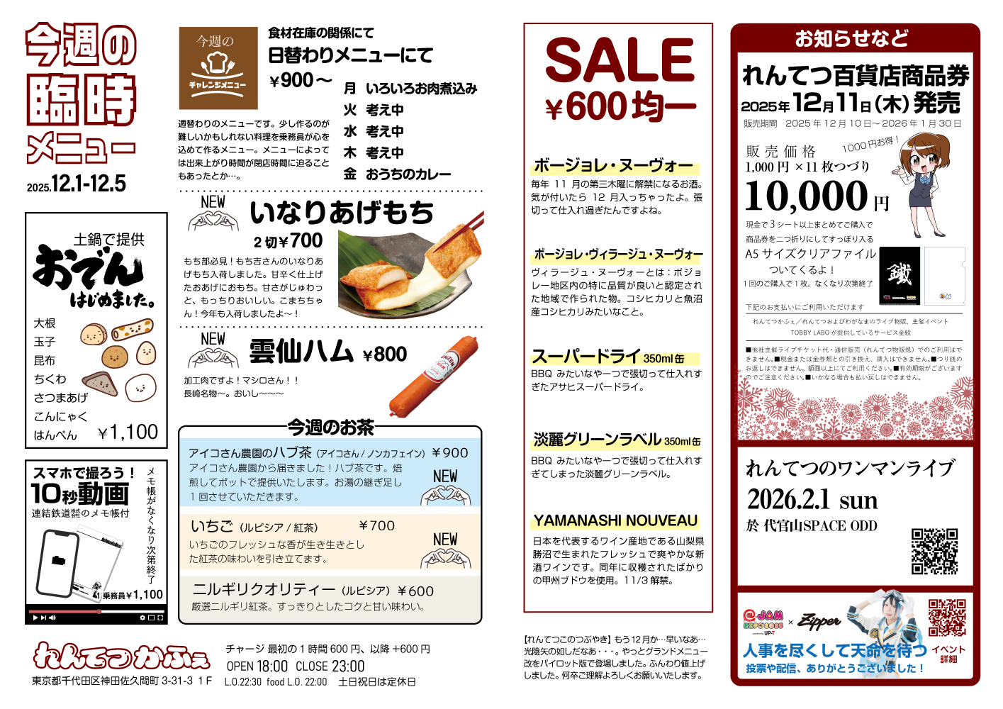 今週は日替わりメニューな12/1-12/5のメニュー