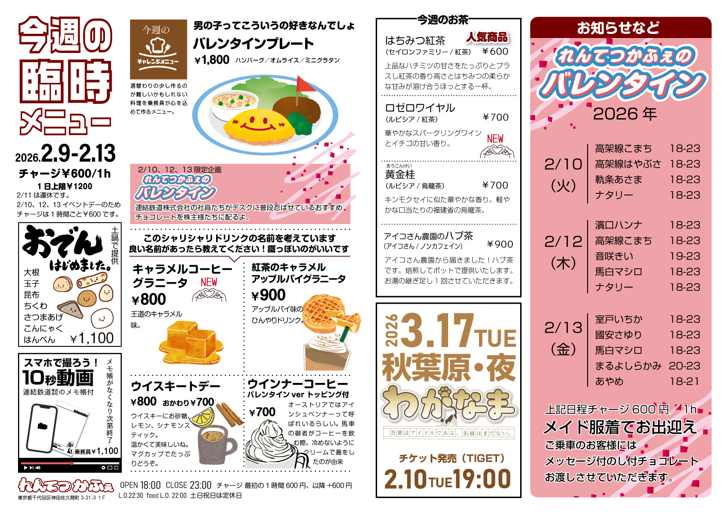 2/10(火)~2/13(金)の3日間限定「れんてつかふぇのバレンタイン」